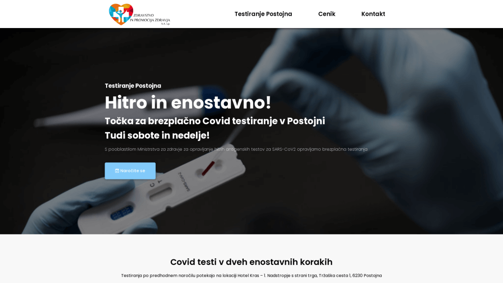 Točka za brezplačno Covid testiranje v Postojni.
